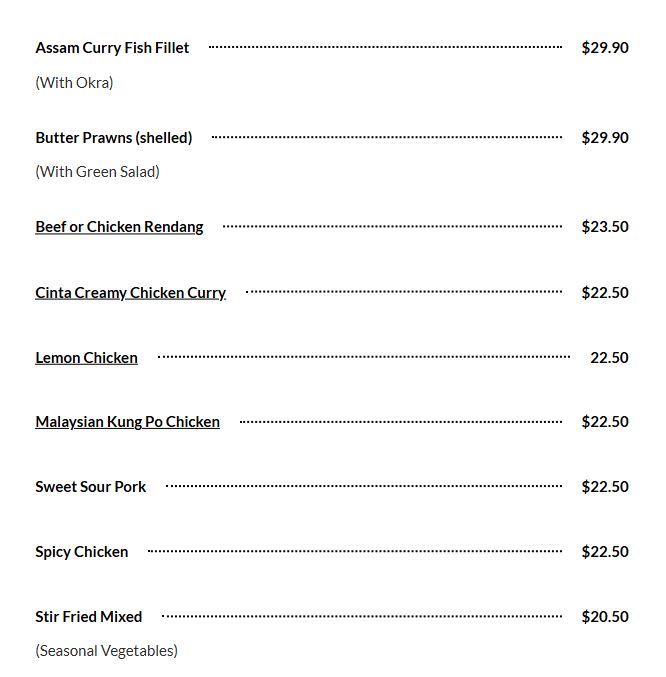 Menu from Cinta Malaysian – Westgate