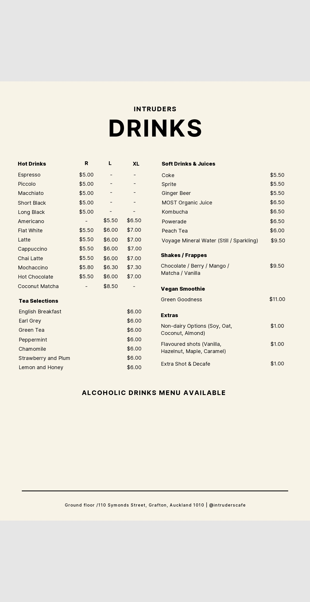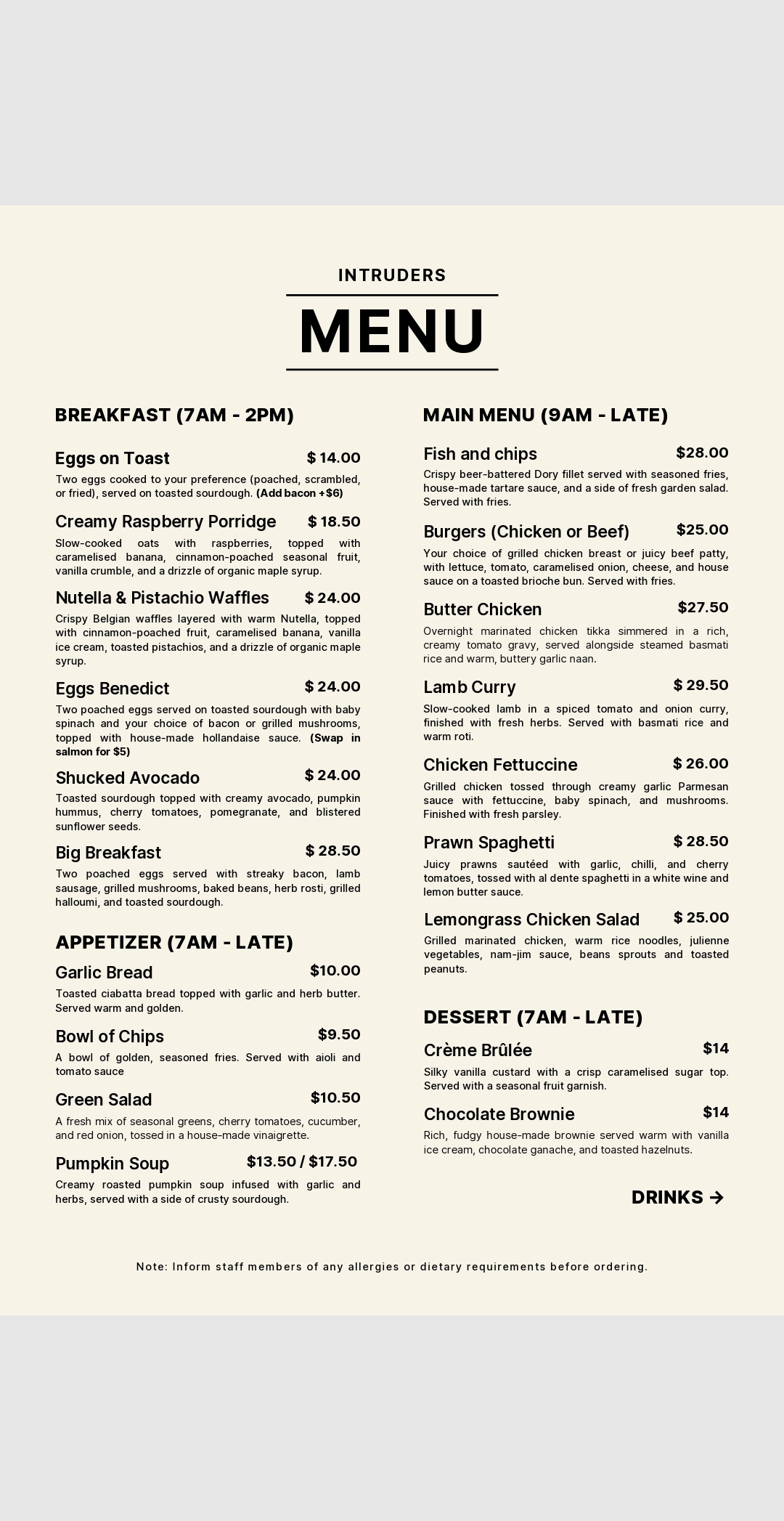 Menu from Intruders Cafe Bar & Eatery