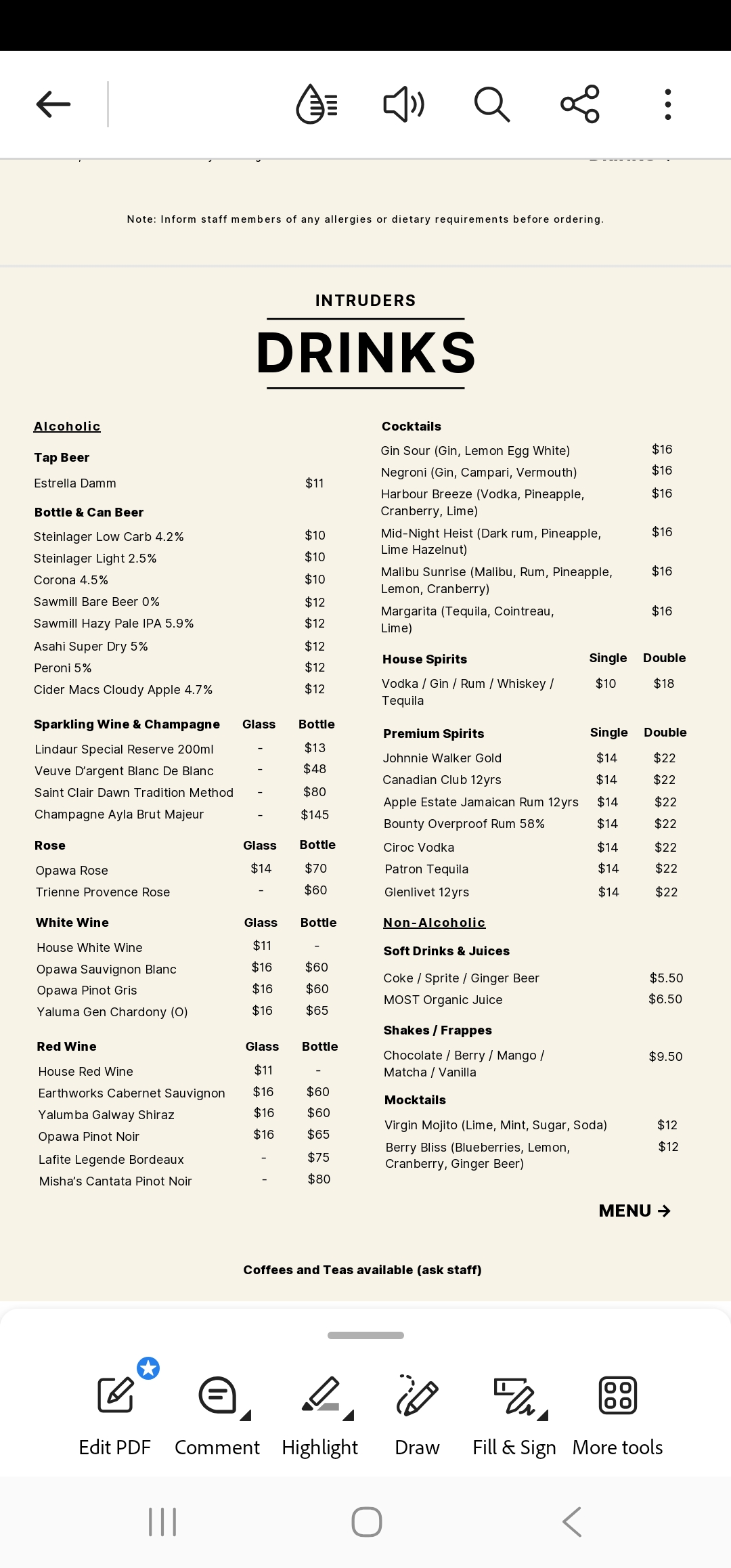 Check out the menu(s)