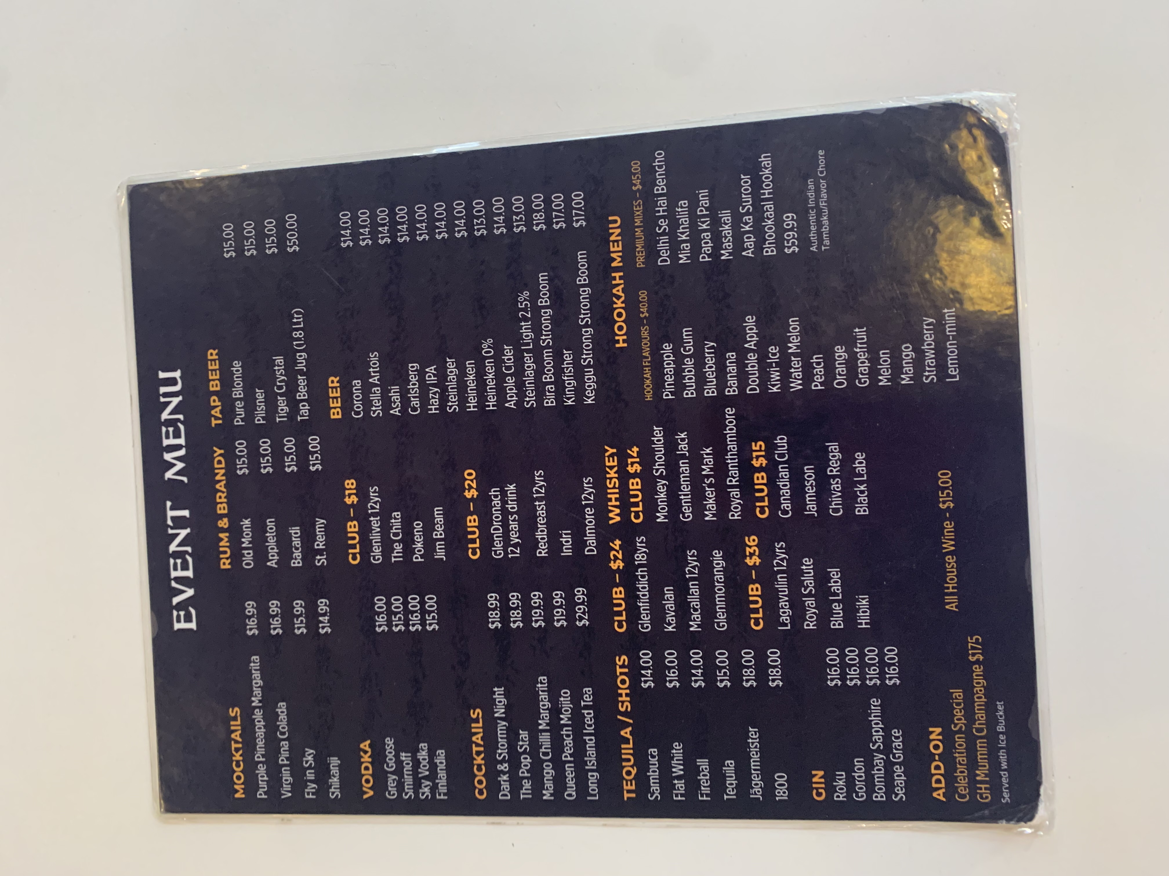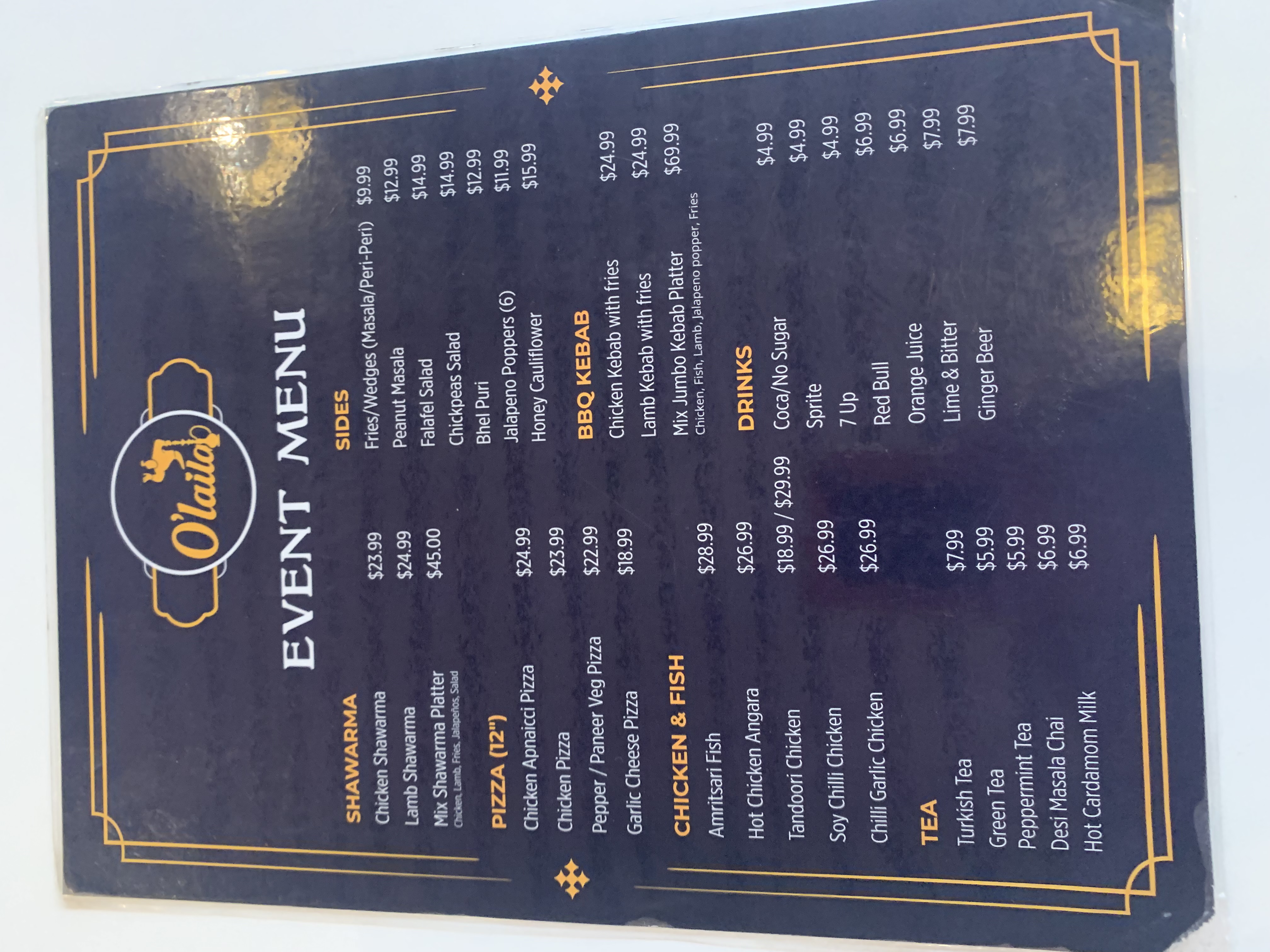 Menu from O'Laila Bar & Cafe