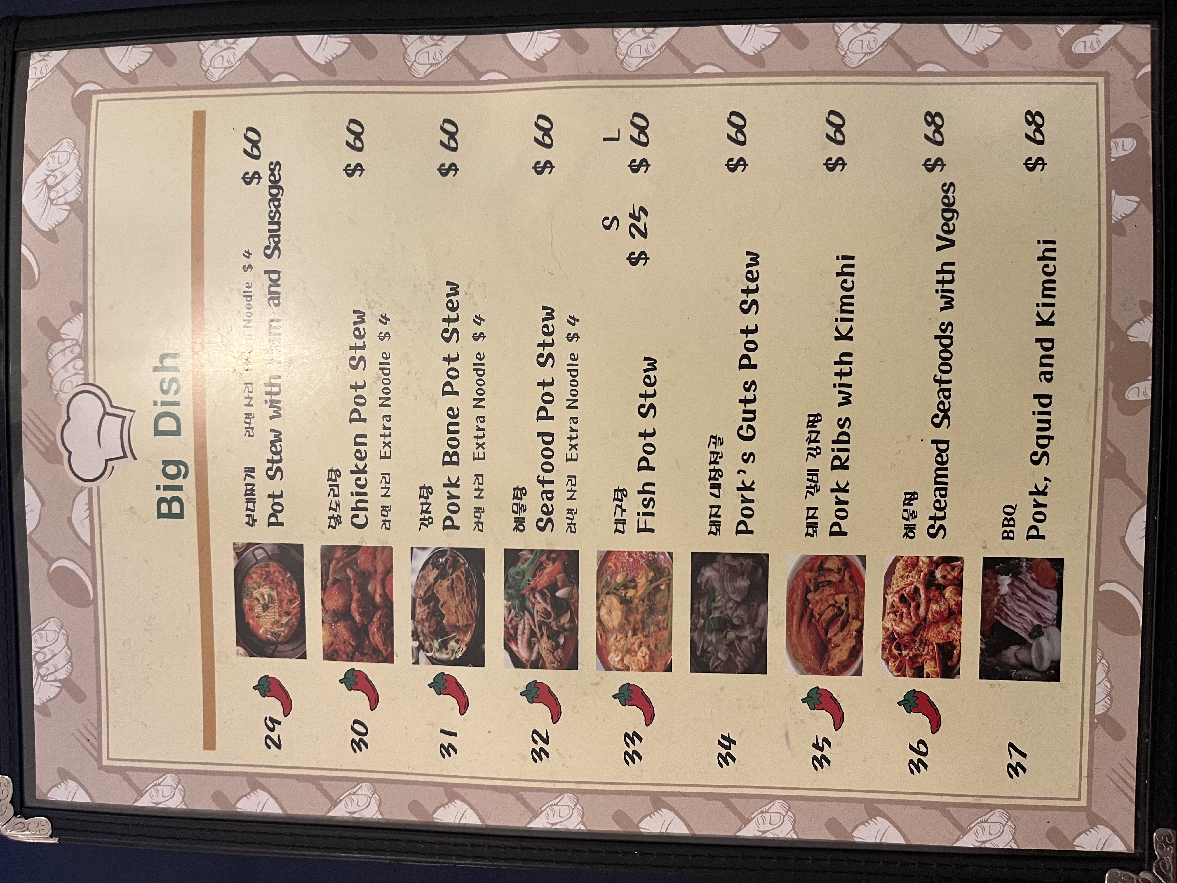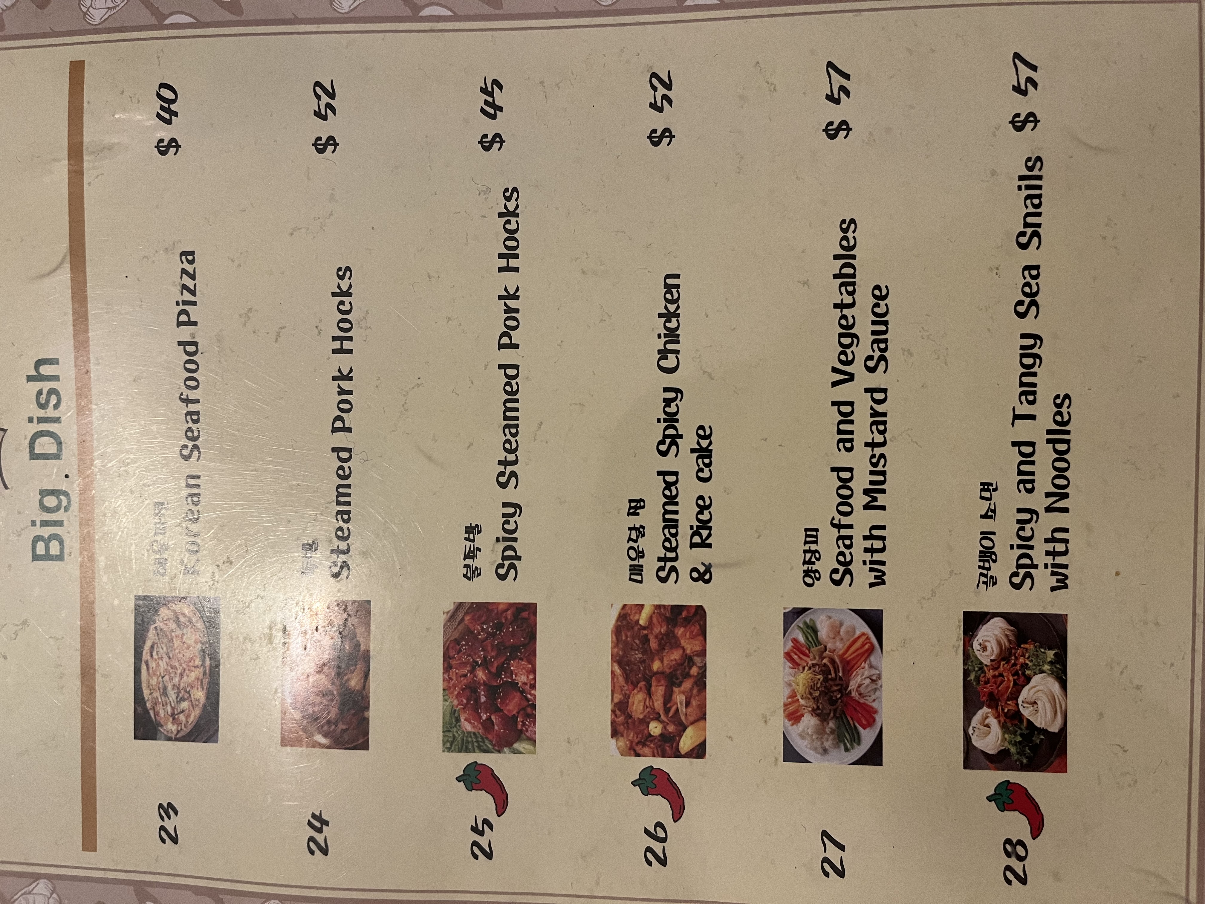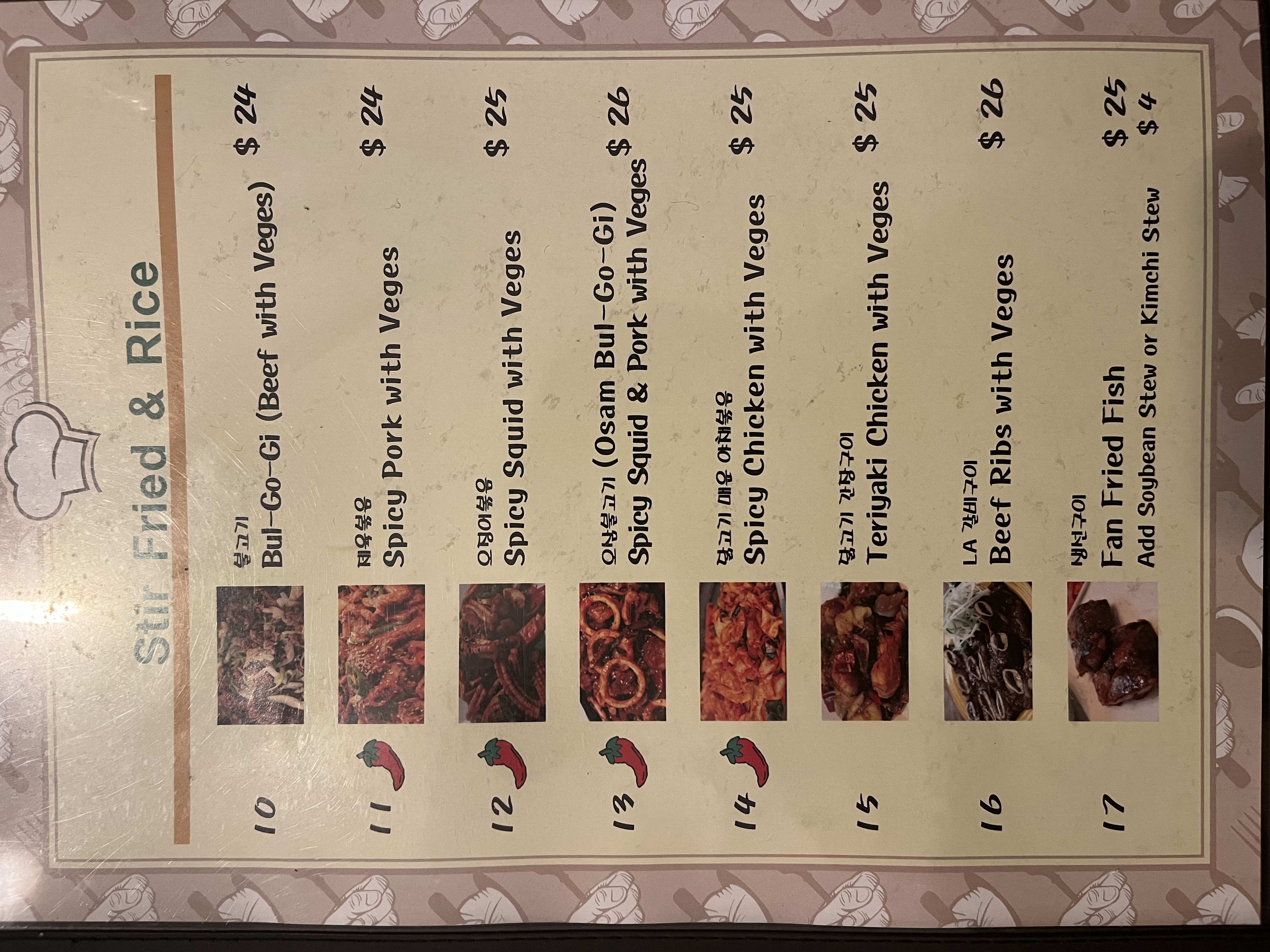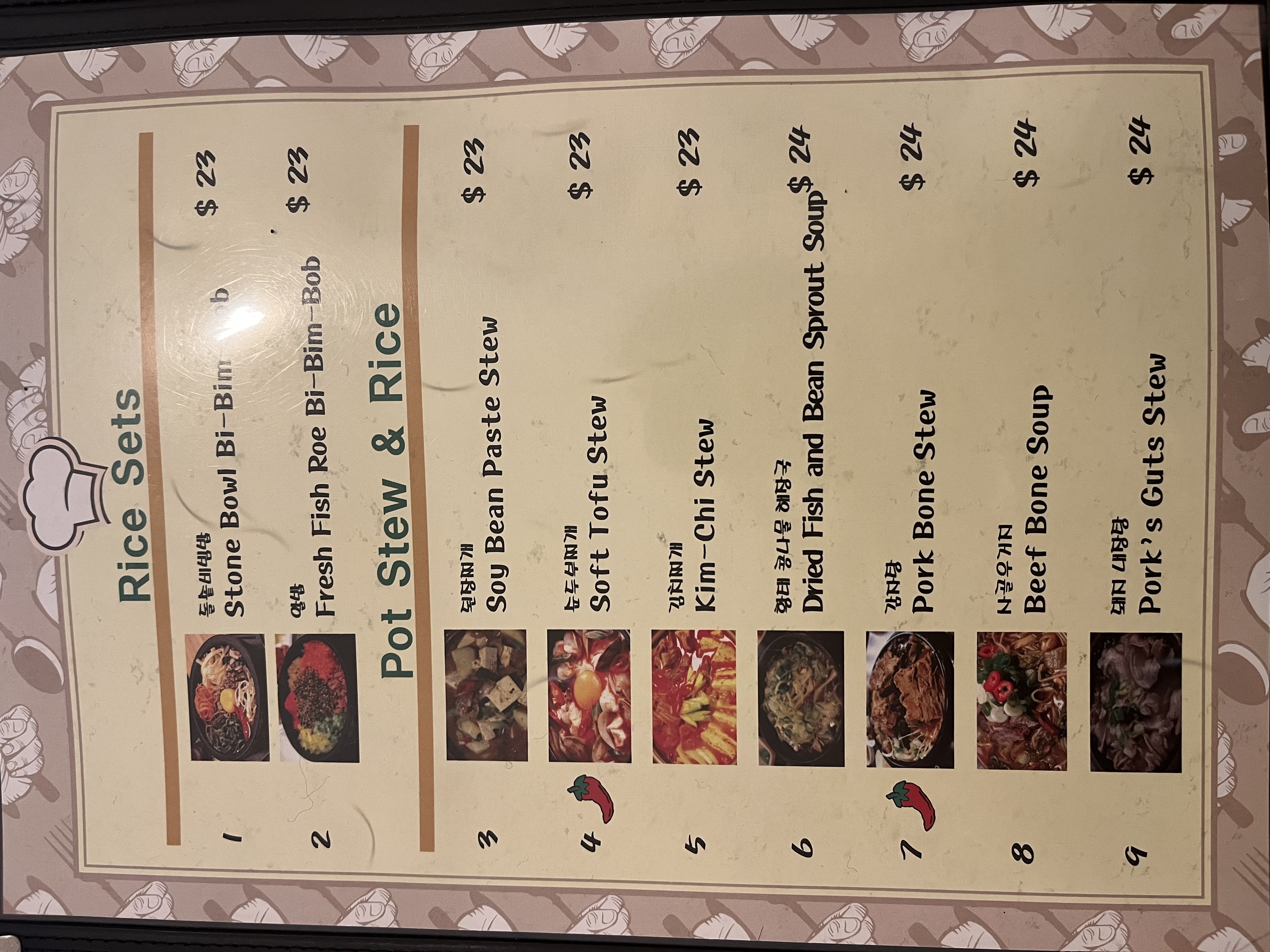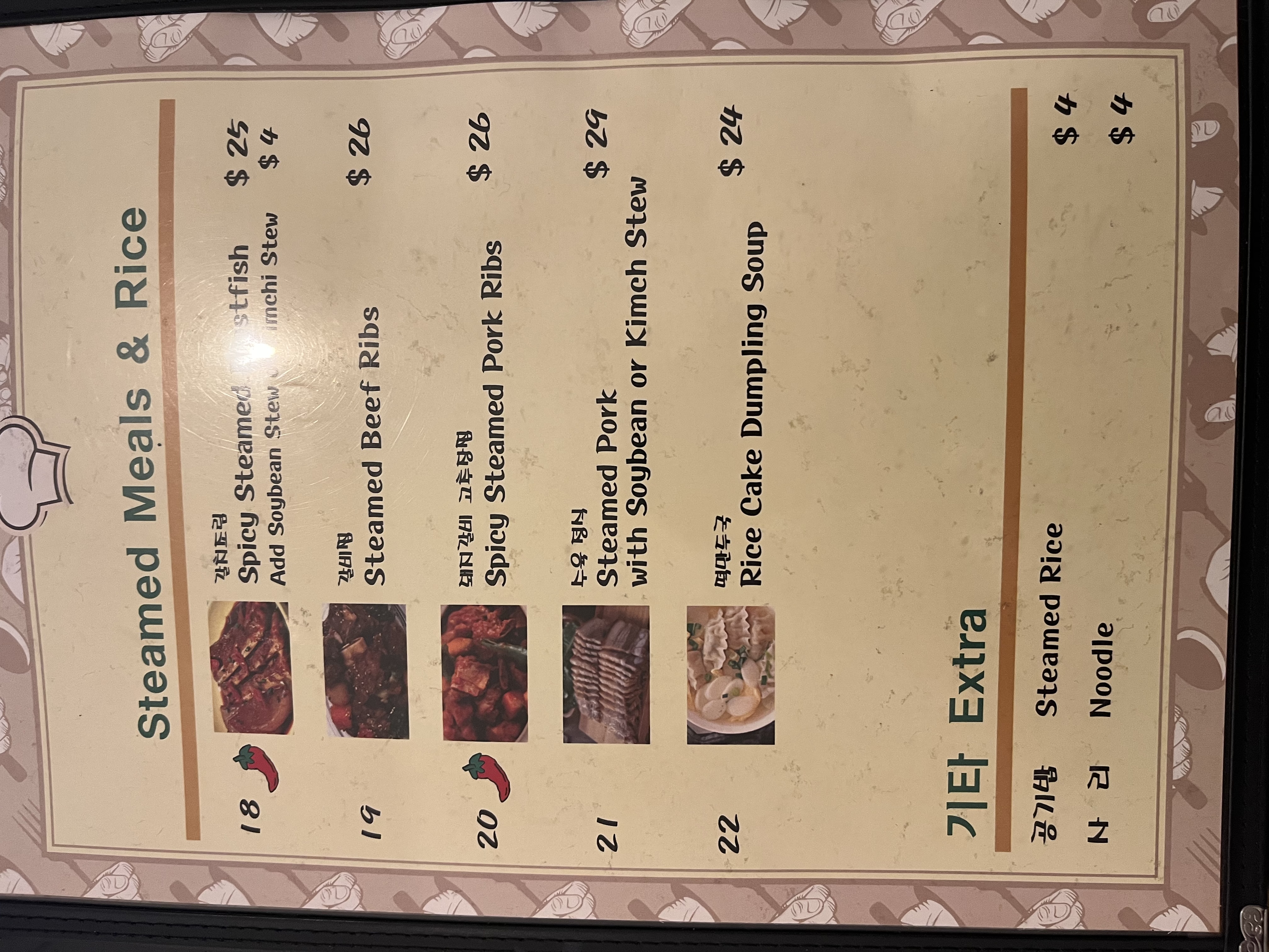 Menu from TJ's Korean Restaurant